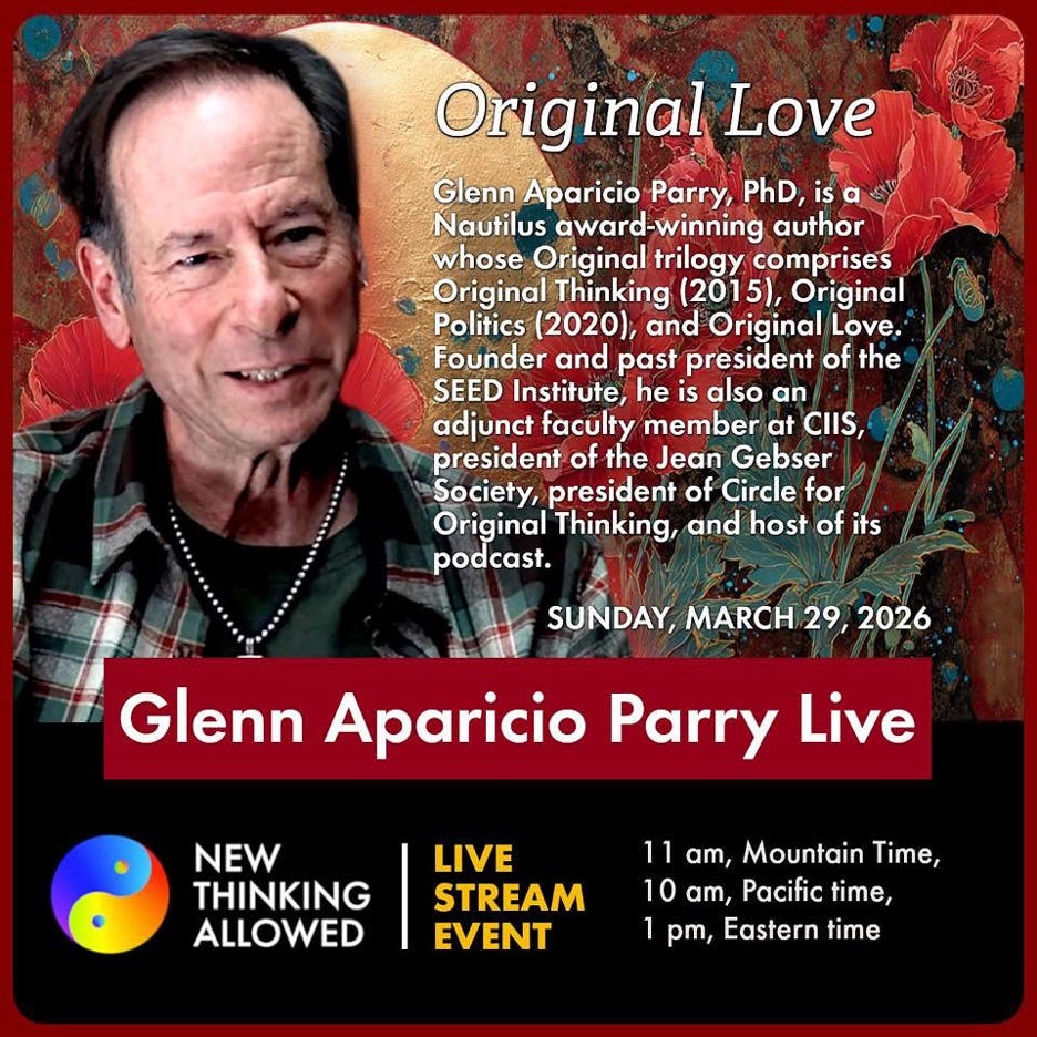 One thing an author never knows is what events will accompany the launch of their book. I was in Taos, NM to present on Original Love the day the war with Iran broke out (February 28th). Jeffrey Mishlove introduced me at that heartwarming event, and later asked me about the war, having the foresight to know that the events of that day would not be resolved anytime soon.